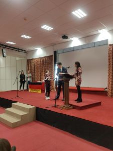 The first German Speaking Championship 2022-2023 was held  at St Ignatius College Secondary School, Qormi. 26 secondary schools (state and non-state) took part in this event. 104 young speakers from all state and non-state schools have been brought together to showcase their speaking abilities in a German speaking contest. They were able to convey information verbally in German and in a way that the listener could understand. A certificate of participation was awarded to the participants who have completed all speaking activities. An award ceremony recognised then the success of year 8 and year 10 students who were able to communicate effectively in German. The best 3 students from each year group were: