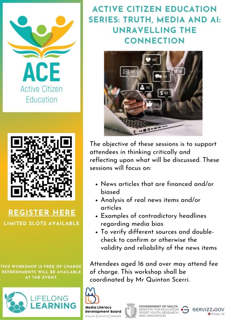 The session will be hosted by Mr. Quinton Scerri, a popular producer and presenter, who will kick off the event by defining media literacy in practical terms. Following his introduction, we will dive into a critical, interactive discussion covering: