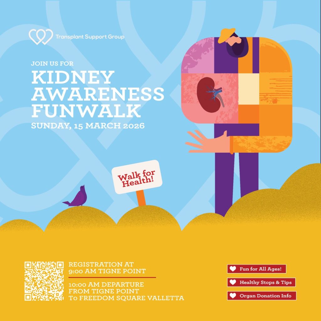 The awareness week will conclude with the Kidney Awareness Fun Walk on Sunday 15th March 2026, intended as a family-friendly event to promote healthy living, solidarity, and community engagement. Further details are available in the attached posters.